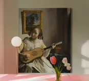 Johannes Vermeer - Il suonatore di chitarra (1672) tela con Cornice a cassetta