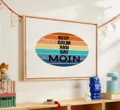 "KEEP CALM AND SAY MOIN" - il classico con un look retrò da tramonto. Questo disegno combina il noto slogan Keep Calm con l'umorismo della Germania del Nord e il fascino marittimo. Perfetto per i bambini della costa, per l'aurora boreale e per chiunque ami il Mare del Nord, il Mar Baltico e il saluto "Moin". Un'attrazione su magliette, felpe con cappuccio, adesivi, tazze o poster - e un'idea regalo originale per gli appassionati di spiaggia, mare e stile vintage.