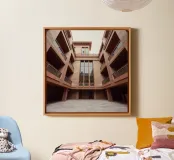 L'architettura moderna mette in mostra un cortile tranquillo tela con Cornice a cassetta