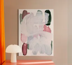 Delicata complessità nelle superfici dei quadri astratti, morbidi accenti e sfumature di colore pastello si alternano a velature trasparenti, superfici opache, campi strutturati, applicazioni di colore a impasto, forti sovrapposizioni espressive e sfumature di colore. Espressione gestuale intuitiva, sottile, sensibile, energica, potente. Linee, segni, tracce.