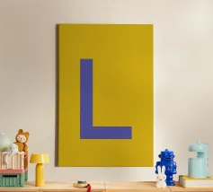 Bellissime scritte nelle tonalità del giallo e dell'arancione, accentuate da rilievi blu su uno sfondo morbido e delicato.