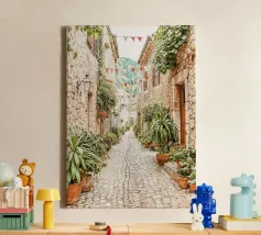 Maiorca - Scala in pietra con piante verdi a Fornalutx tela