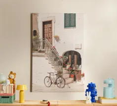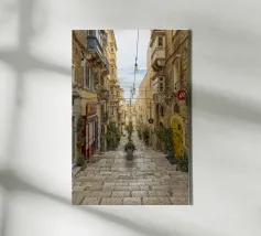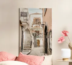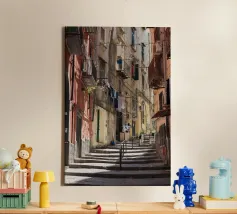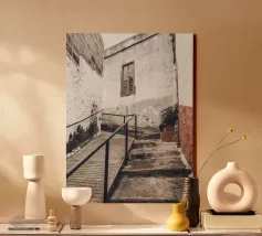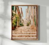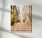 La foto mostra una scala in pietra mediterranea a Maiorca. Il villaggio di Fornalutx è considerato uno dei più belli della Spagna! Mi piace sempre andarci e passeggiare con la mia macchina fotografica. Questo poster è un must per ogni fan di Maiorca!