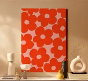 Margherite retrò alla fragola 1 tela con Cornice a cassetta
