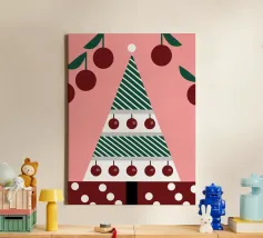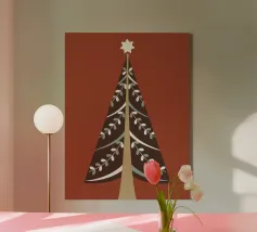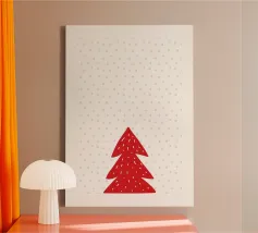 Un albero di Natale minimalista dal carattere festoso: sottili linee rosse su uno sfondo rosso intenso creano una silhouette moderna ed elegante. Questo disegno è perfetto per chi ama le decorazioni natalizie semplici, eleganti e artistiche. Combina calore e tranquillità - ideale per il soggiorno, il corridoio o come sottile dichiarazione stagionale sulla parete.