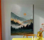Misty Forest Landscape - Autumn Trees and Mountain Sunset tela con Cornice a cassetta