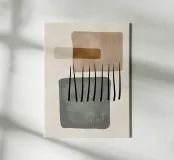 Arte digitale astratta caratterizzata da linee, forme organiche e geometriche con texture e pennellate nere in morbide tonalità terrose di marrone e grigio. Arte moderna per interni essenziali, scandinavi, bohémien e boho. Godetevi l'arte digitale minimalista con forme e linee morbide.