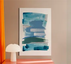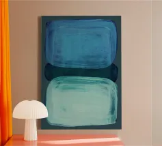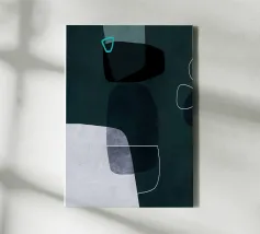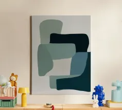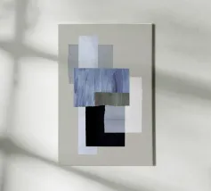 Modern abstract shapes in retro style with blue and grey tela