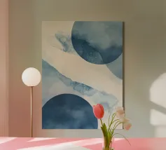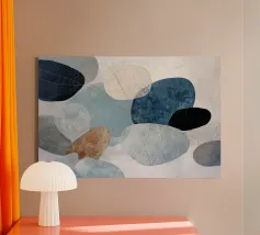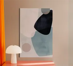 Un tranquillo gioco di luci e ombre, Eclipse Forms esplora l'equilibrio tra presenza e vuoto attraverso forme organiche stratificate. Le morbide tonalità indaco, pietra e avorio riecheggiano ritmi celestiali in questa moderna composizione astratta.