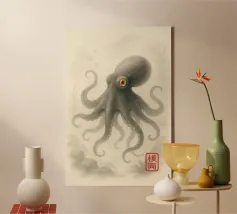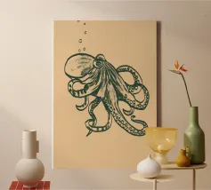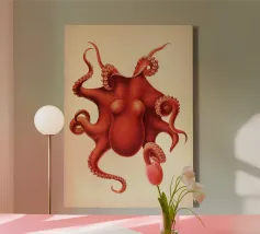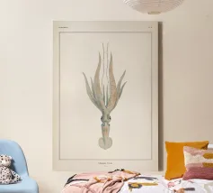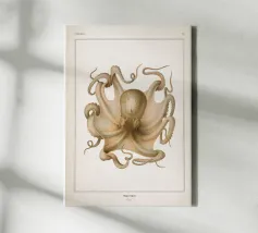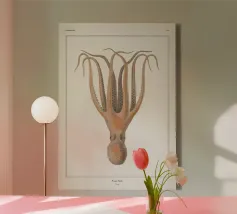 Questa suggestiva stampa d'arte reimmagina un'illustrazione d'epoca del 1890 di un polpo Velodona, originariamente disegnata da Carl Chun per la German Deep Sea Expedition. Ora l'immagine è stata rivisitata in chiave contemporanea con morbide sfumature pastello e forme circolari radianti, elevando l'immagine da scientifica a sacra. Questo pezzo è perfetto per gli amanti dell'oceano, per i collezionisti attenti al design o per chiunque voglia portare un tocco di surreale nel proprio spazio. Ideale per bagni, nursery a tema costiero o come audace dichiarazione in interni moderni: è la storia naturale con un'anima psichedelica.