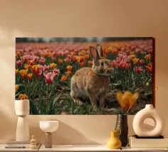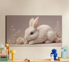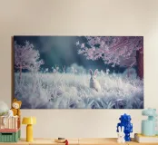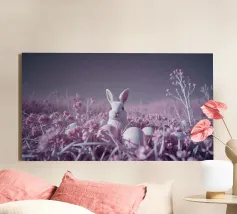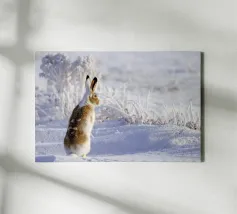 Paesaggio innevato con un coniglio in una foresta mistica tela