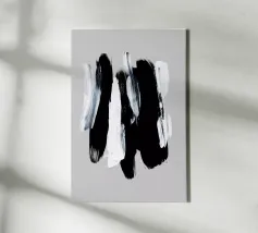 Schizzi di vernice con forme e linee in bianco e nero su uno sfondo beige
