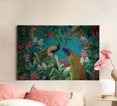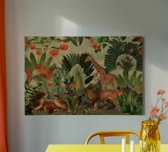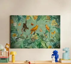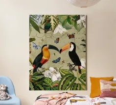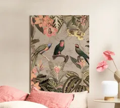 Pappagallo esotico colorato e nostalgico in una giungla tropicale 2 tela