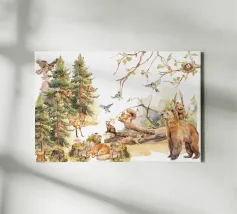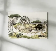 Un vivace collage di illustrazioni vintage con bellissimi e colorati pappagalli verdi appollaiati in mezzo a un lussureggiante paesaggio floreale. La scena è ricca di fascino tropicale ed esotico, poiché i pappagalli si stagliano sullo sfondo del fogliame vibrante della giungla. Intorno a loro sbocciano incredibili fiori esotici, mentre i rami di palma aggiungono un tocco di eleganza tropicale. Sullo sfondo, una mappa d'epoca emerge dolcemente, aggiungendo un senso di avventura e di viaggio. Questa miscela armoniosa di natura, fauna selvatica e fascino vintage crea un disegno senza tempo, perfetto per gli amanti dei paesaggi esotici e dell'arte nostalgica.