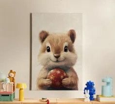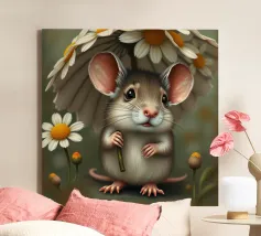 Piccola creatura che tiene in mano un fiore con un'espressione gentile tela
