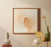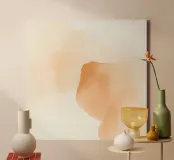 pittura astratta ad acquerello con i colori caldi del pesca e del beige tela con Cornice a cassetta