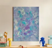 "Pixie Dust" è un dipinto acrilico astratto e sognante ispirato ai tenui colori pastello, alla fantasia giocosa e al mondo magico che condivido ogni giorno con mia figlia, che ora ha 7 anni. Quest'opera d'arte fonde il turchese vivace con il viola delicato e il bianco arioso, creando una tavolozza di colori rilassante ma allo stesso tempo allegra, perfetta per l'arredamento moderno. Ideale per gli amanti dell'arte che apprezzano le decorazioni murali dai colori pastello, le stampe astratte turchesi e gli interni moderni e rilassanti, quest'opera aggiunge un sottile senso di magia a qualsiasi soggiorno, camera da letto, cameretta o spazio di lavoro creativo.