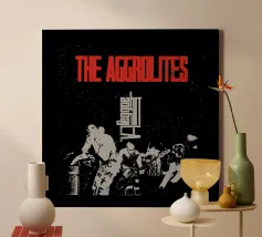 Questa arte murale audace e caotica presenta una sorprendente fusione di riflessi giallo neon, teschi disegnati a mano e un televisore vintage statico che crea un'intensa atmosfera distopica.