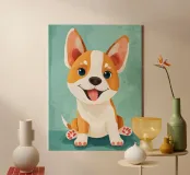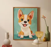 Ritratto di cucciolo Corgi felice tela con Cornice a cassetta