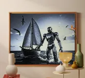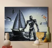 ROBOT AVEC VOILIER. Noir et blanc tela