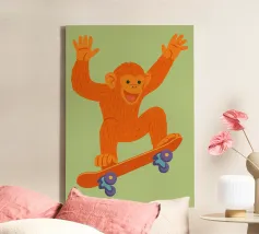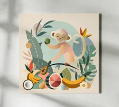 "La scimmia e l'uva" è un adattamento illustrato del racconto classico con un tocco artistico moderno.