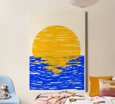 Dive into pure creative energy with this wildly expressive abstract seascape. A sun composed of chaotic, overlapping scribbles in fiery orange and golden yellow appears to dissolve into the atmosphere above rolling blue ocean waves. The frenetic line work creates a sense of heat shimmer and emotional intensity, as if the artist captured not just the scene but the feeling of standing before nature's spectacle. This piece celebrates spontaneity and raw artistic gesture, perfect for contemporary spaces that embrace bold, unconventional beauty and creative freedom.