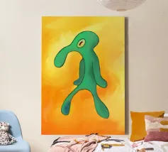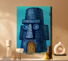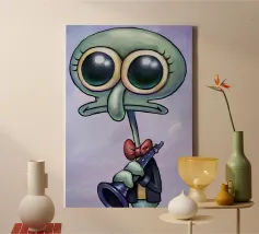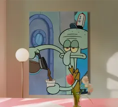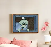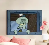 Uno Squidward stanco e annoiato che guarda fuori da una finestra, appoggiato al telaio con un'espressione spenta.