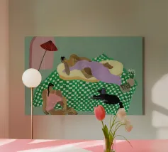 Le donne e le loro amicizie. Questo è il fulcro delle bellissime opere di Dina Bukva, che realizza principalmente su acrilico. L'artista, originaria della Croazia e residente a Vienna, ha conseguito il Master in Graphic and Communication Design alla Central Saint Martins nel 2018, per poi lanciare il proprio marchio, NUDES AND CROISSANTS, poco tempo dopo. Il marchio celebra la diversità in tutti gli aspetti e le forme e si ispira alla bellezza della vita quotidiana. I cortometraggi animati dell'artista sono stati proiettati e premiati in vari festival. Dina è collaboratrice della rivista Gault&Millau e ha già lavorato con marchi come ZARA.