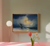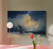 L'opera di Ivan Aivazovsky Tempesta in mare in una notte di luna ritrae l'impressionante potenza della natura. Nuvole scure di tempesta attraversano il cielo mentre le onde si infrangono violentemente sotto un fugace bagliore lunare. La tensione tra il tumulto e la luce cattura sia il pericolo che la bellezza, rendendo questo dipinto un centro d'arte drammatico per gli appassionati di arte marina e di ispirazione nautica inmarine art, romantic seascape, tempesta in mare, nautical wall décor, ocean storm painting, maritime drama, russian marine artist, navy ship in storm, atmospheric seascape, night ocean art, coastal wall décor, nautical gift, sea power painting
