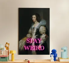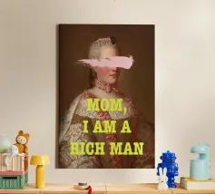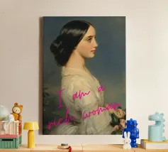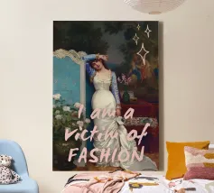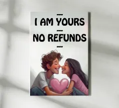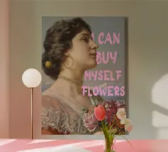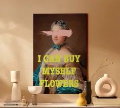 Prendete un impegno con un tocco spiritoso con "I Am Yours No Refunds". Questa accattivante stampa pop art fonde magistralmente un'affascinante scena classica con una dichiarazione contemporanea e umoristica. Presenta una figura storica elegantemente vestita, che tende graziosamente la mano accanto a un sereno specchio d'acqua, con un cesto di fiori e un cagnolino ai suoi piedi. Il testo in grassetto, di colore rosa caldo, "I AM YOURS NO REFUNDS", sovrasta l'immagine, trasformando l'ambientazione romantica in una dichiarazione giocosa ma decisa. Perfetto per aggiungere personalità e un tocco di fascino spensierato a qualsiasi spazio contemporaneo. Realizzato ad un prezzo eccezionale