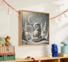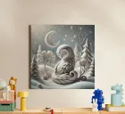Un gufo Twiglet, con morbide piume bianche che ricordano delicati ramoscelli, se ne sta tranquillo in una foresta coperta di neve. L'aspetto etereo e quasi magico del gufo si fonde perfettamente con il paesaggio invernale, mentre i fiocchi di neve scivolano dolcemente intorno a lui. La luna, che risplende luminosa, proietta una luce morbida e argentea sulla scena, illuminando il gufo e gli alberi innevati. Nonostante il cielo notturno, la scena è pervasa da una pacifica luminosità, creando un'atmosfera serena e onirica nel cuore della foresta. Una perfetta cattura della tranquilla bellezza della natura al chiaro di luna".