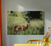 Uno splendido Impala si trova in mezzo a un'erba lussureggiante tela