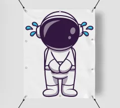 Un robot dei cartoni animati con segni di X sugli occhi si erge con un'espressione sconfortata sotto il testo "404. Motivazione non trovata": Motivation Not Found", creando un'interpretazione umoristica e simpatica di un comune messaggio di errore di Internet.
