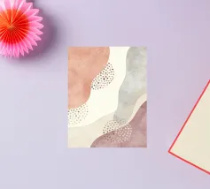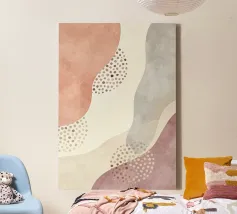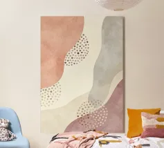 Una rilassante stampa murale astratta con forme organiche fluide nei toni della terracotta, del blush, del beige e del grigio tenue. Progettata in stile minimalista con texture delicate e accenti puntinati, quest'opera d'arte aggiunge calore e calma a qualsiasi spazio moderno.