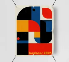 Una composizione geometrica con un impulso. Colori primari, contrasti netti, volumi prorompenti. Questo poster "astratto" dà voce visiva all'energia moderna. Perfetto per elettrizzare una parete bianca.