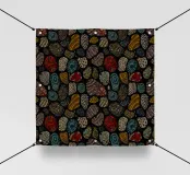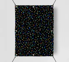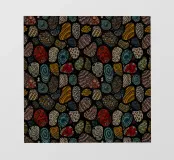 Un ricco motivo astratto con forme organiche e superfici strutturate in colori caldi come verde acqua, rosso ruggine, giallo oro, corallo, beige e blu su sfondo nero. Perfetto per gli amanti dell'arte astratta, gli appassionati di texture, i fan dei colori caldi e tutti coloro che apprezzano le forme organiche con dettagli artistici e la raffinatezza della terra.