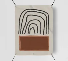 Quadro astratto moderno con forme organiche nei toni caldi del marrone e dell'arancione e linee nere. Opera d'arte minimalista con pennellate nere su sfondo beige. Per gli stili di vita e gli interni bohémien, moderno, essenziale, industriale e scandinavo. Ideale per la camera dei bambini, la camera da letto, il soggiorno o l'ufficio.