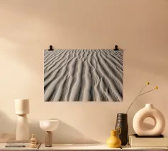 Modello di sabbia nel deserto del Sahara. Fotografia astratta nel deserto dell'Algeria. Paesaggio naturale nel Sahara. Fotografia in bianco e nero in Africa. Linee, luci e ombre su una duna di sabbia nel deserto.
