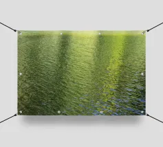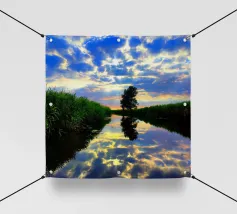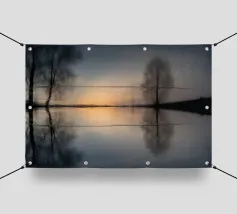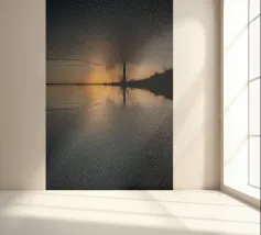 Questa composizione simmetrica è dedicata all'ambiente rilassante dell'acqua, al riflesso della natura e ai colori magici del tramonto in inverno. La luce dorata del sole si riflette sulla superficie dell'acqua. La scena è caratterizzata anche da toni blu scuro e riflessi di luce grigio-argento. Le aree ghiacciate e i dolci movimenti dell'acqua conferiscono al riflesso invernale un effetto astratto.