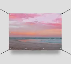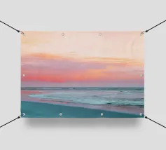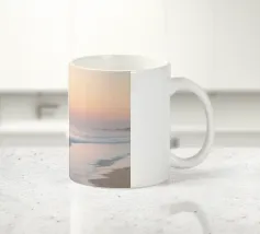 Questa tranquilla opera d'arte cattura un'alba mozzafiato su una spiaggia nebbiosa. Il cielo tenue e pastello e le onde delicate creano un'atmosfera rilassante e pacifica, perfetta per un arredamento ispirato al relax.