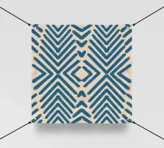 Questa immagine presenta un motivo geometrico composto da forme triangolari alternate, ciascuna riempita da linee orizzontali disegnate a mano.I triangoli sono disposti in un formato a griglia, creando un design ripetitivo e strutturato.La tavolozza dei colori offre uno sfondo morbido e viola con linee blu scuro all'interno dei triangoli.L'effetto disegnato a mano aggiunge una sensazione dinamica e strutturata al motivo altrimenti nitido e angolare.Questo design moderno è ideale per progetti grafici, tessuti o sfondi digitali e offre una sensazione dinamica e strutturata.