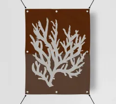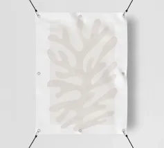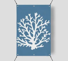 Opera d'arte minimalista con alghe bianche astratte o forme simili a coralli su uno sfondo grigio-blu tenue. Perfetto per un'estetica moderna e organica.