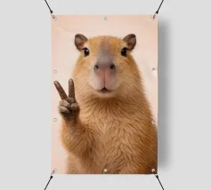 Una simpatica illustrazione di capibara circondata da un testo motivazionale. Le parole incoraggiano l'individualità con un tocco umoristico, evidenziando il fascino dei capibara.