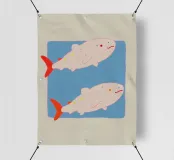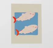 Questo motivo giocoso mostra due pesci stilizzati e luminosi con pinne di coda rosse e punti colorati su uno sfondo chiaro. La rappresentazione semplice e i colori tenui conferiscono al quadro un carattere affascinante e leggermente nostalgico. Ideale come opera d'arte da parete per un elemento decorativo con un tocco marittimo.