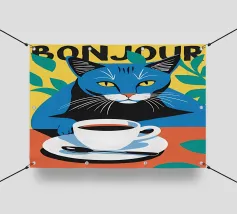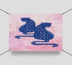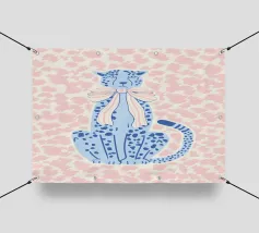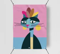 Una vivace illustrazione di gatti ispirata alla pop-art, con un sorprendente felino blu dalla finitura astratta e strutturata. Su uno sfondo rosa, con una vivace stampa di labbra, questo disegno emana fascino e un'estetica moderna. Perfetto per gli amanti dei gatti e per chi apprezza l'arte colorata e accattivante!