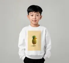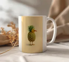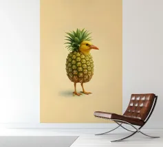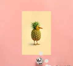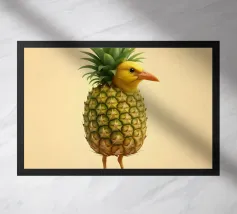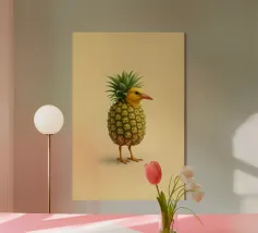 Portate una ventata di fascino tropicale nel vostro spazio con questa stravagante opera d'arte con uccello ananas. Con un uccello giallo brillante che emerge da un corpo di ananas realistico, completo di corona di foglie ed espressione giocosa, questo disegno unisce creatività e umorismo in uno stile pulito e moderno. Il morbido sfondo beige ne esalta l'estetica calda ed estiva. Perfetto per cucine, camere dei bambini, studi o collezionisti di arte stravagante e fantasiosa, aggiunge un tocco divertente ed edificante a qualsiasi interno.