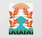 Provate l'armonia di quest'opera d'arte simmetrica con cigni in splendida formazione. I colori vivaci e le forme regolari creano una composizione rilassante e accattivante.