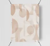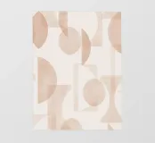 Il disegno presenta un'accattivante disposizione di cerchi, rettangoli e forme astratte di foglie sovrapposte, che alludono sottilmente a forme organiche all'interno della struttura. La texture granulosa aggiunge profondità e interesse visivo.