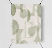 Il disegno presenta un'accattivante disposizione di cerchi, rettangoli e forme astratte di foglie sovrapposte, che alludono sottilmente a forme organiche all'interno della struttura. La texture granulosa aggiunge profondità e interesse visivo.