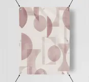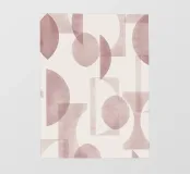 Il disegno presenta un'accattivante disposizione di cerchi, rettangoli e forme astratte di foglie sovrapposte, che alludono sottilmente a forme organiche all'interno della struttura. La texture granulosa aggiunge profondità e interesse visivo.